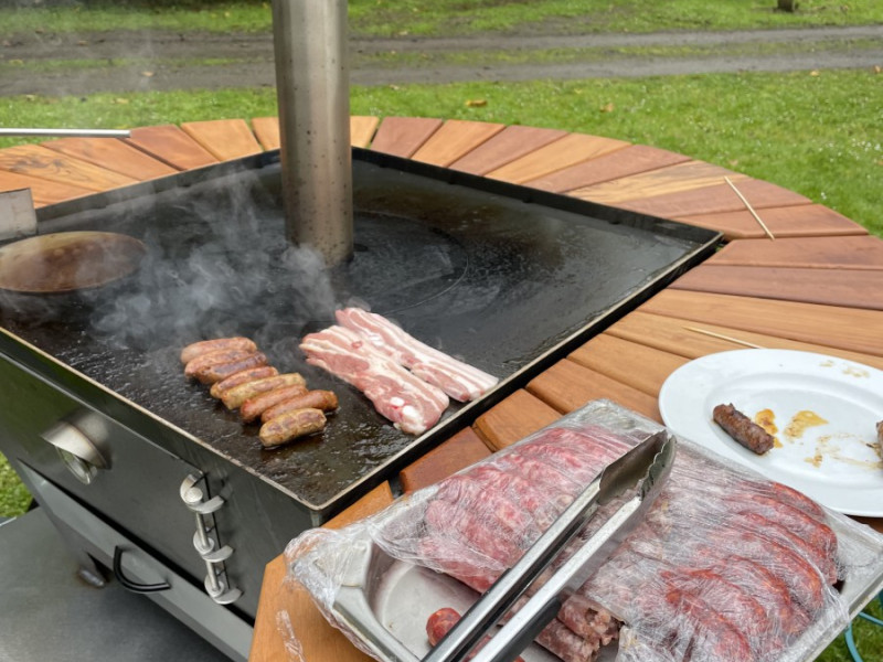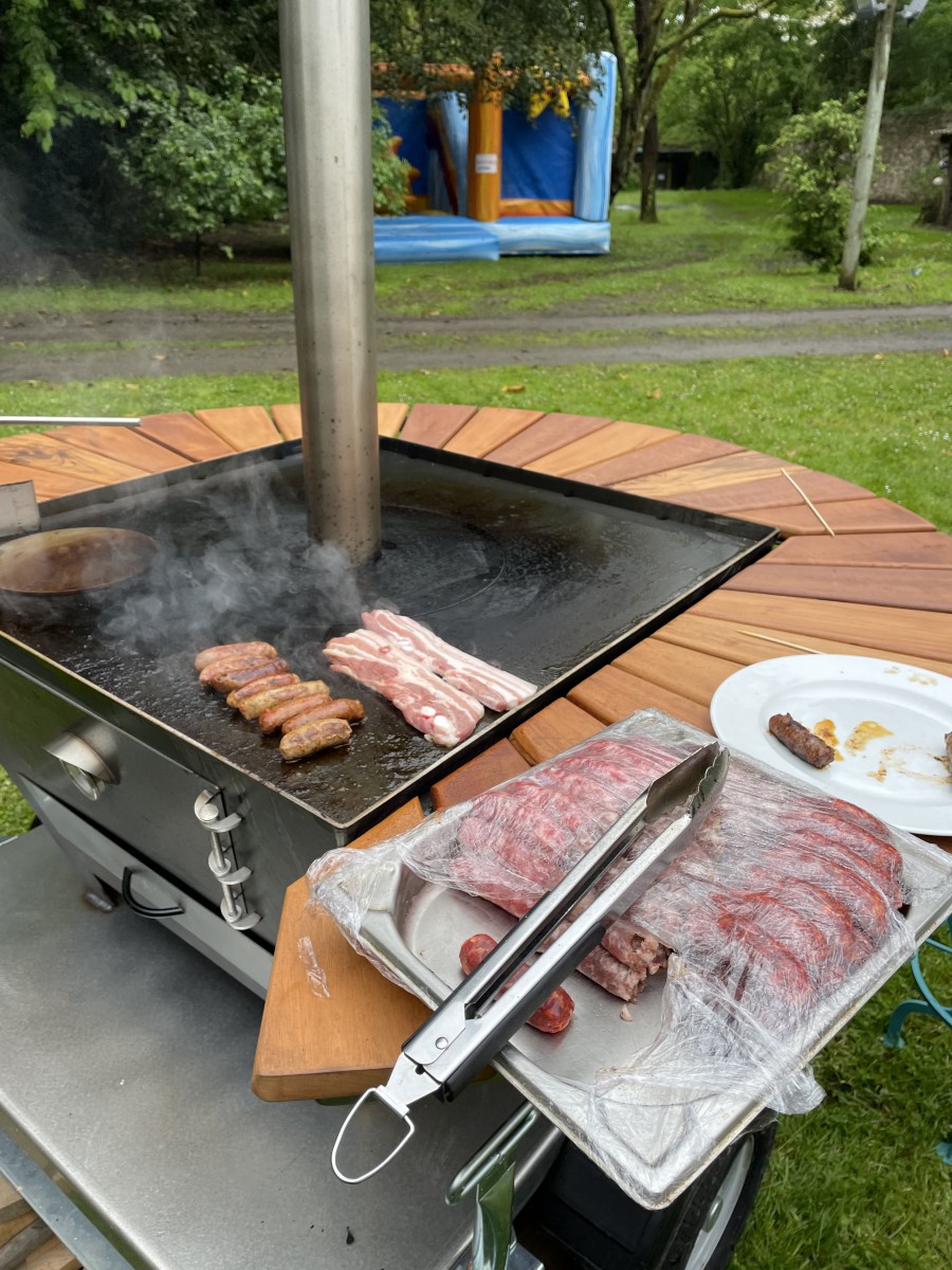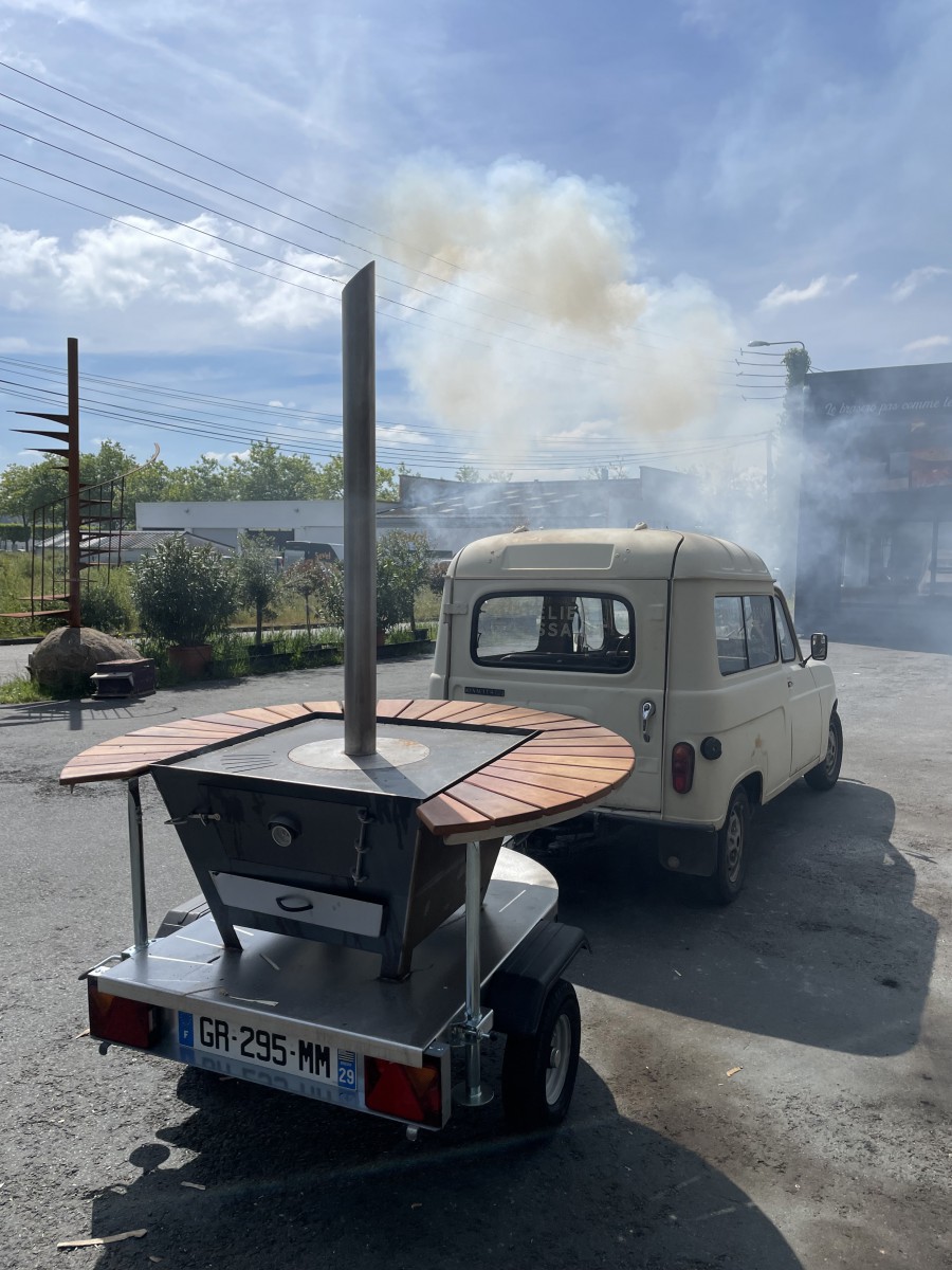 Le brasero remorque est l'unité de cuisson idéale pour tous vos événements : elle est facile à transporter, sa taille XL de 800x800 permet de préparer des repas épiques jusqu'à 150 personnes. Nous retrouvons la possibilité de faire des pizzas, des crêpes et du fumage comme tous nos braseros. La remorque a complètement été testée et certifiée. La barre de traction de la remorque peut se détacher. Elle démarre et chauffe en très peu de temps. L'ensemble est en inox et acier de Corten.